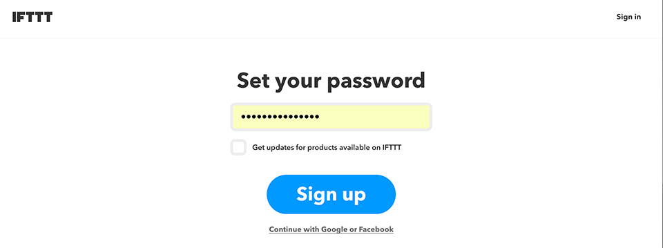 IFTTTのページにアクセスしたら、まずはアカウントの登録をします。