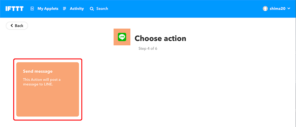 Choose action serviceで「line」を検索すると該当するサービスが出てきますので、LINEをクリック。
