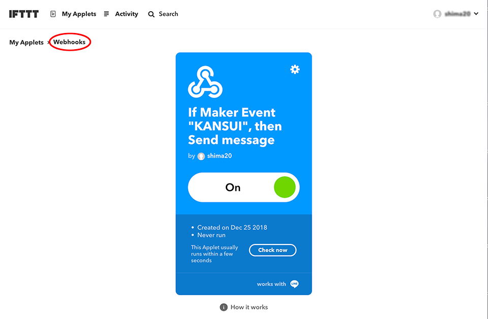 ESP-WROOM-02(ESP32)を使用したデバイスから、LINEへの通知を行うため、IFTTTとの連携の仕方の解説。