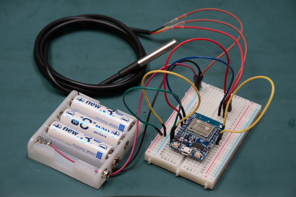 ESP-WROOM-02開発ボードを単三電池で動かす。(DS18B20編)