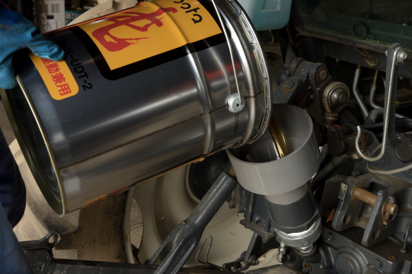 オイル交換は20リットル缶からトラクターに注ぐわけですが、加齢と共に体力的にこの作業がキツくなってきました。