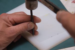 フレームの合わさりは、ぽっちがかみ合うようになっているので、フィルターに穴を開けなければなりません。