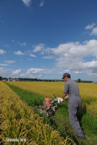 田んぼのあぜ草を刈るのに欠かせないあぜ刈り機。