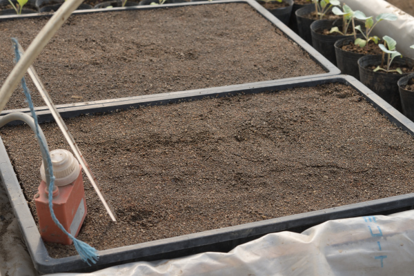 土を入れたバットは電熱線の上に置き、地温を一定に保ちます。