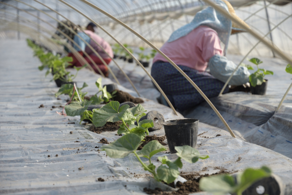 この暑さ、メロンの定植にとってはありがたい。