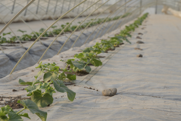 土が舞う玉葱移植作業