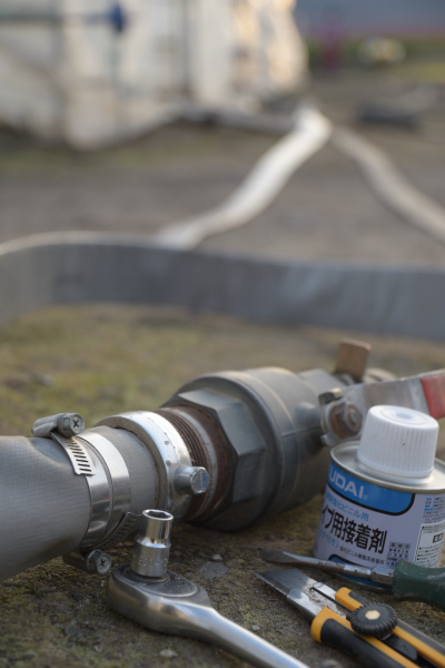 潅水作業(準備や片づけも)を出来るだけ効率的にこなすため、各ハウスへの配管を見直しました。