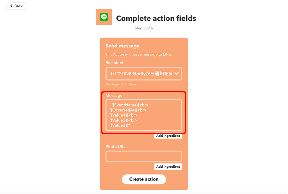 To trigger an Eventが、LINEへのテスト送信の設定です。