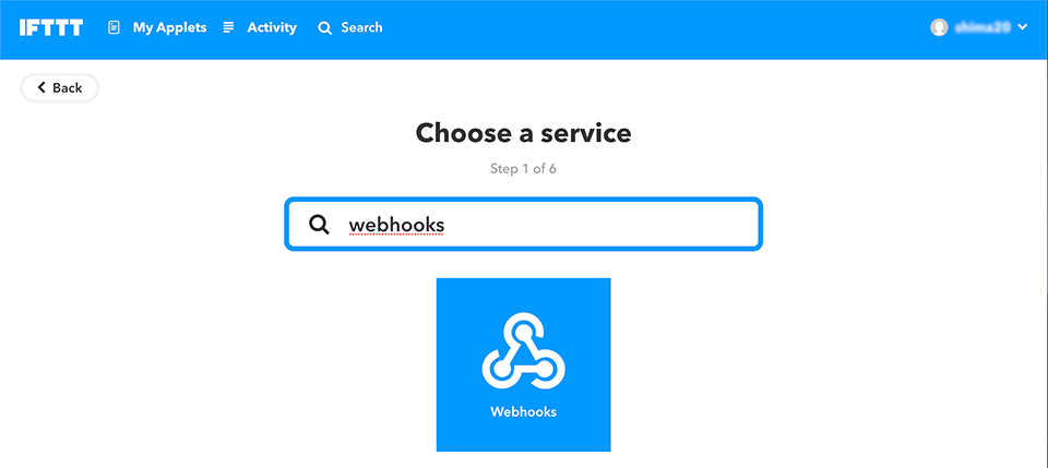 webhooksと検索すると、Webhooksサービスが出てきますので、それをクリック。