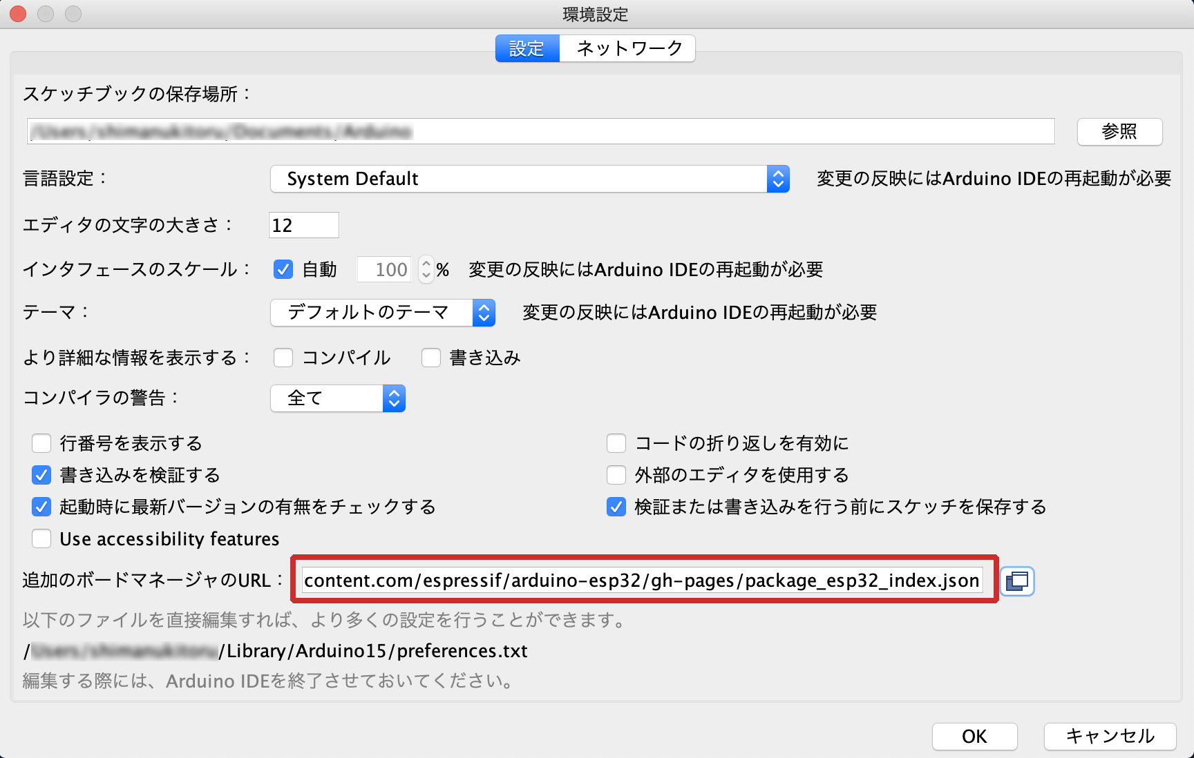 ESPr® Branch 32に書き込むために、Arduino IDEの設定