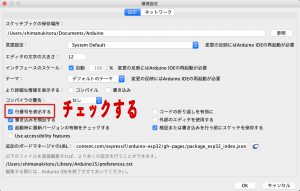 スケッチを見やすくするために行番号を表示するにチェックを入れます。