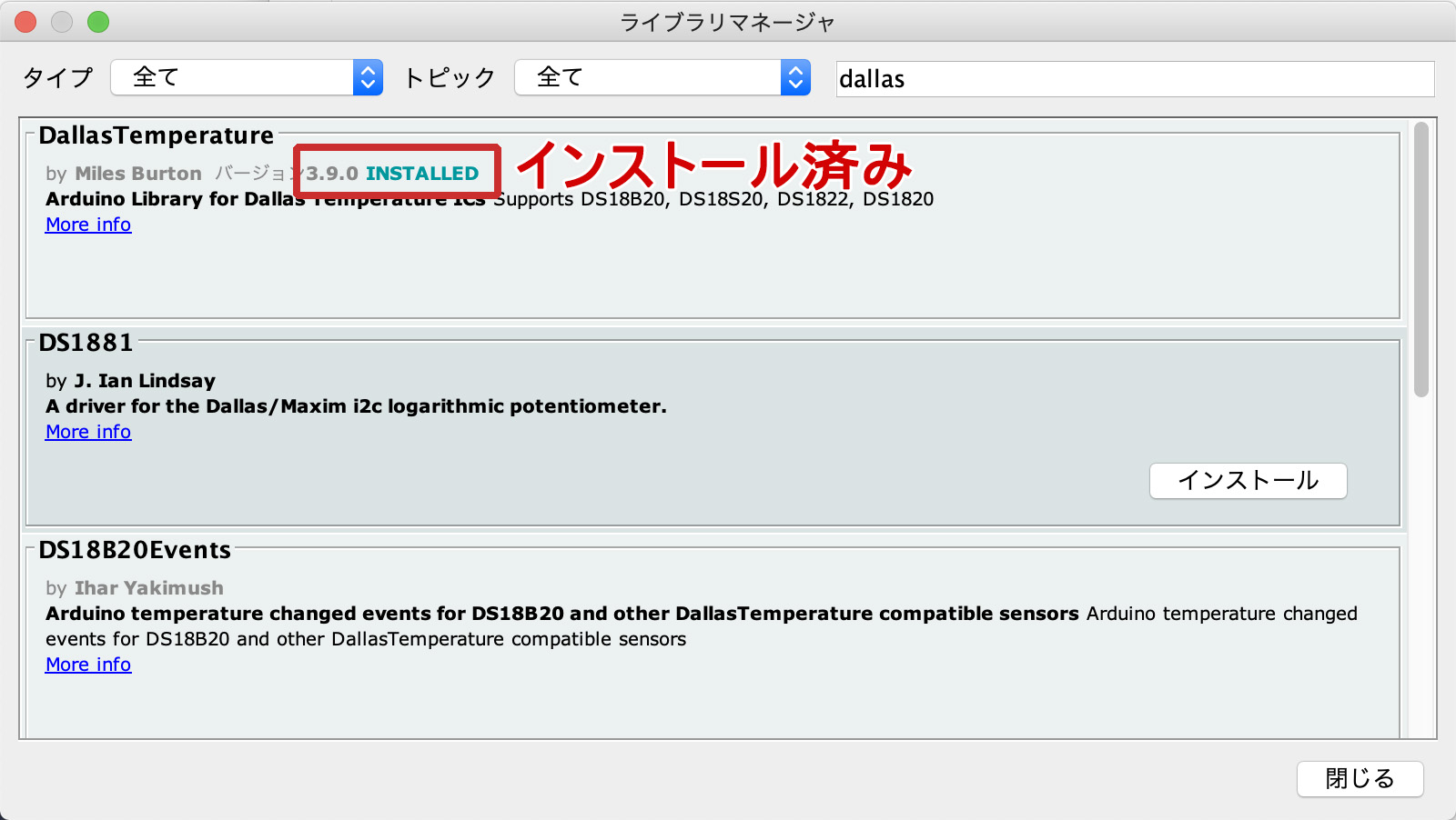 同じ様に「onewire」「ambient」を検索してインストールします。
