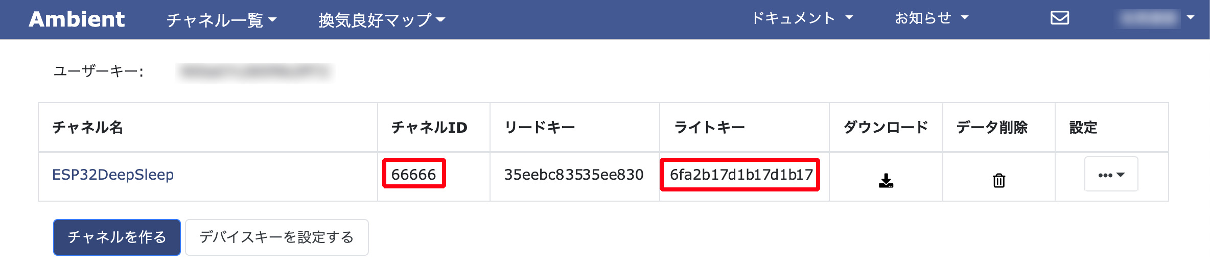 unsigned int channelId = 12345; //AmbientのチャネルID