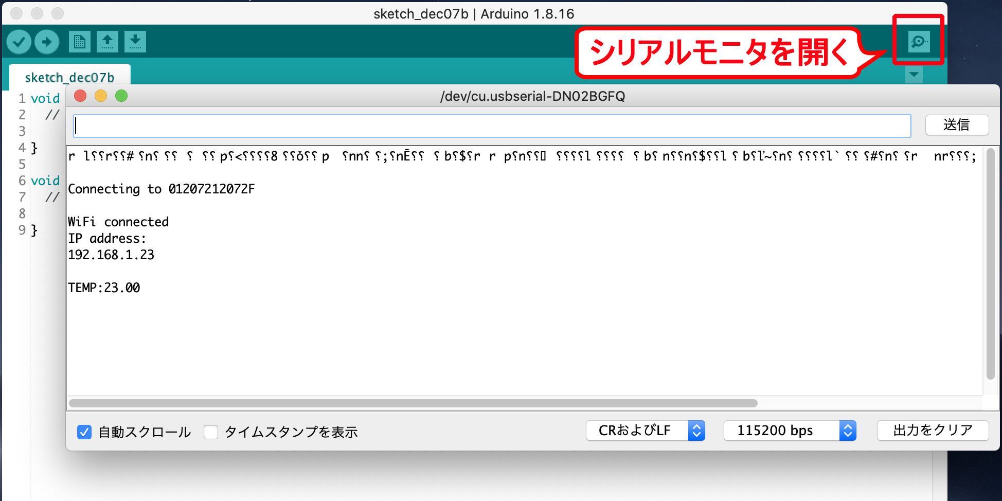 Serial.begin(115200); //デバッグ用にシリアルを開く