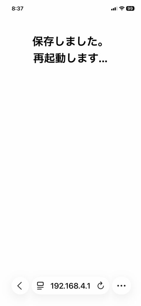 保存後、自動的に再起動します。