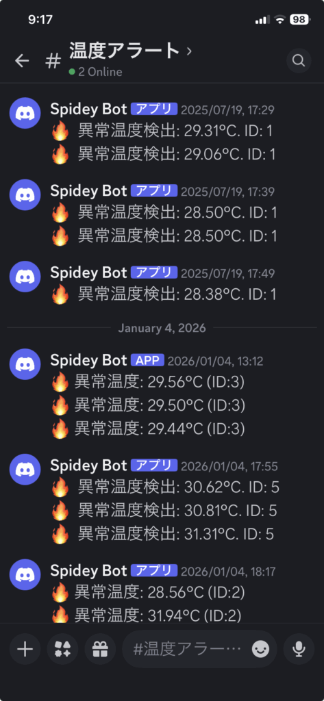 - 設定温度超過時にDiscordへ自動通知